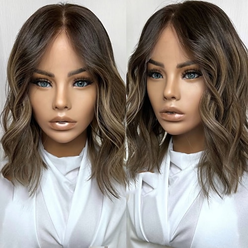 parrucca brasiliana 100% vergine remy capelli umani chiusura 5x5 capelli con mèches parrucca frontale in pizzo 13x4 caschetto corto parrucca di capelli umani ondulati naturali con capelli del bambino