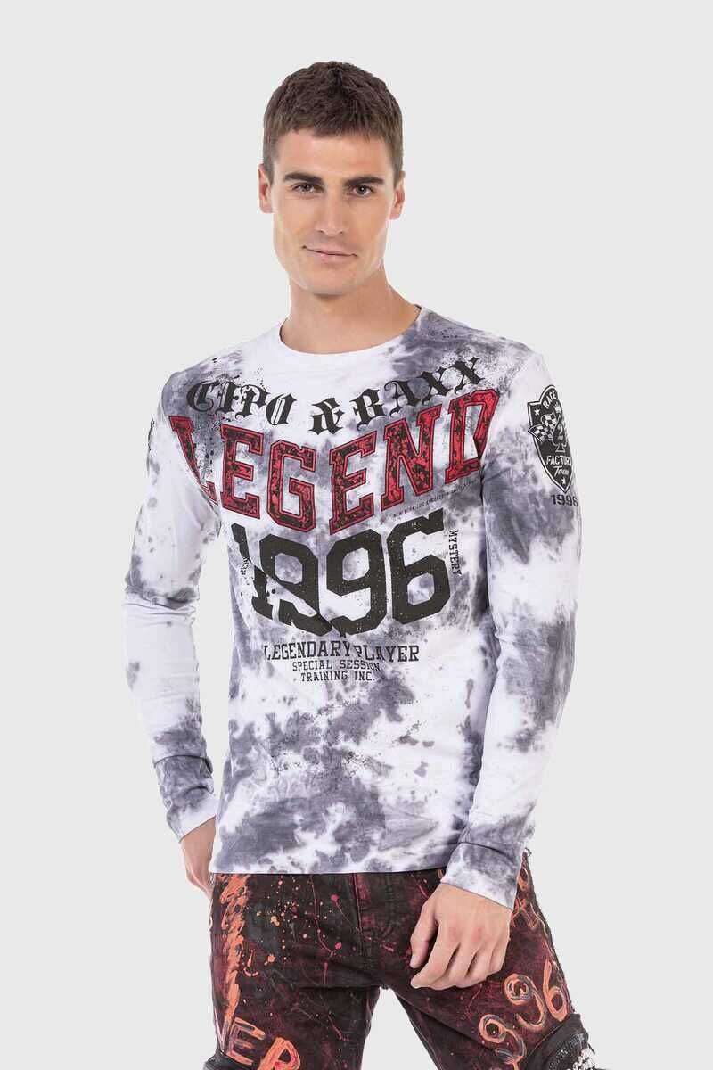 T-Shirt CIPO & BAXX "Sweatshirts", Herren, Gr. XL, weiß, 95% Baumwolle;5% Elasthan, bedruckt, casual, regular fit, Rundhals, Langarm, Shirts