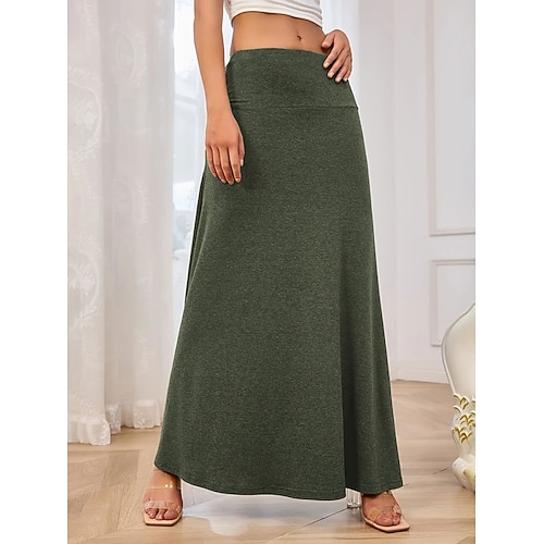 Per donna Gonna Linea A Moda Casual Maxi Vita Alta Gonne Semplice Lavoro a maglia Elasticizzato Streetwear Quotidiano Vinaccia Verde salvia Nero Verde militare Primavera Fil di lana Poliestere