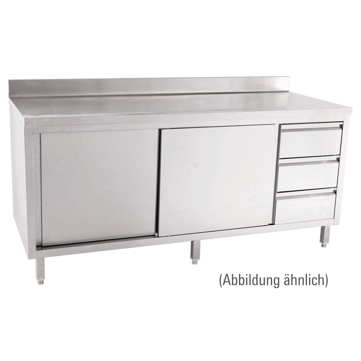 Arbeitsschrank mit Schiebetüren mit 100 mm Aufkantung Schubladen rechts