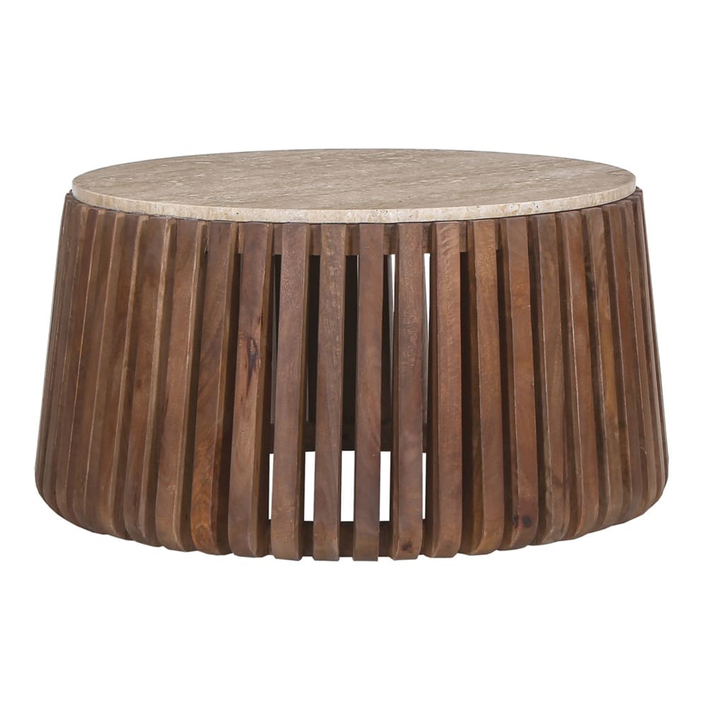 Table basse en travertin et bois de manguier 70 cm