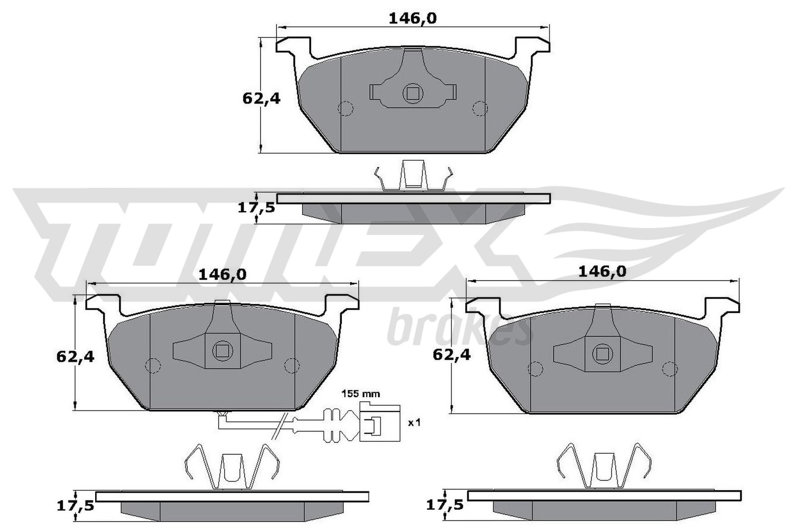 TOMEX Brakes Bremsbelagsatz, Scheibenbremse TX 17-03 vorne rechts links für SKODA VW SEAT AUDI 5Q0698151C 5Q0698151T JZW698151AS