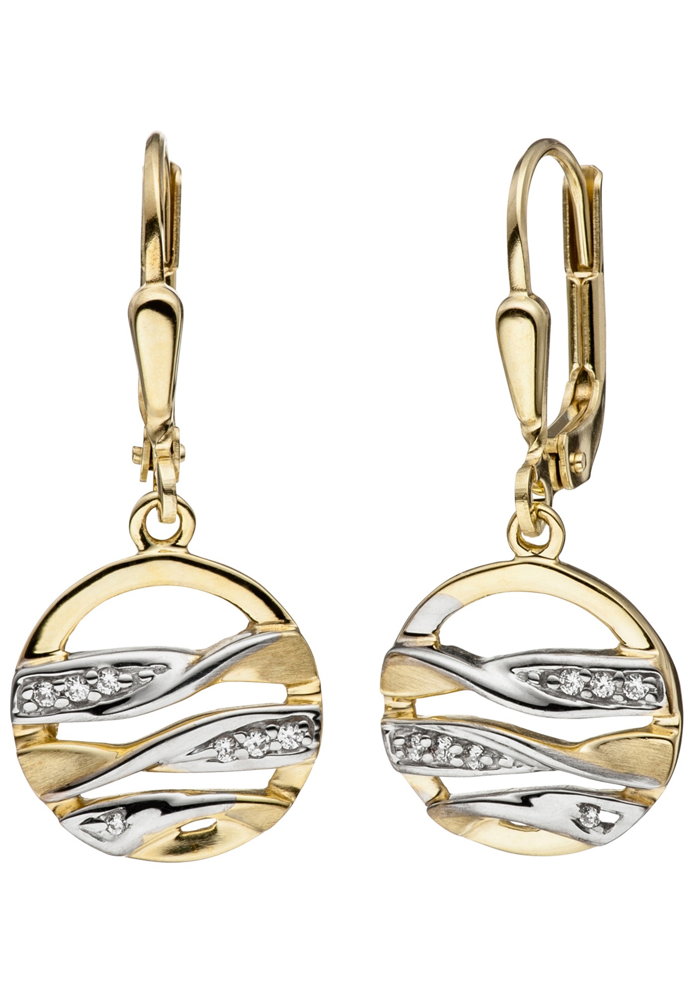 Paar Ohrhänger JOBO, gold (gelbgold 333), Ohrringe, Damen, Gelbgold 333, rund 333 Gold bicolor mit Zirkonia