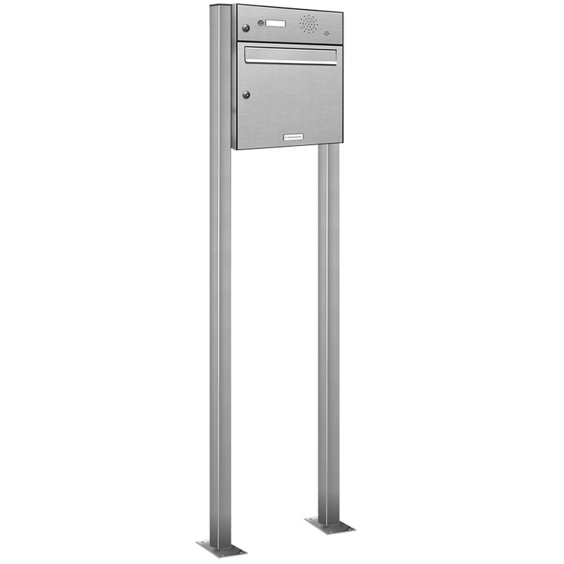 AL Briefkastensysteme 1 Fach Premium Edelstahl Stand Briefkasten Anlage mit Klingeln, Post A4 modern, robust, wetterfest, Artikelnummer: 331T1S1KS