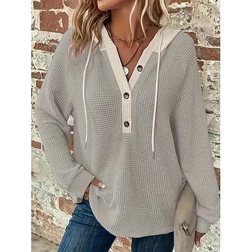 Per donna Blusa Tinta unica Elegante Casual Manica Lunga Con Cappuccio Top Regolari Quotidiano Patchwork Bottoni Nero Bianco Rosa Grigio Primavera Autunno Inverno