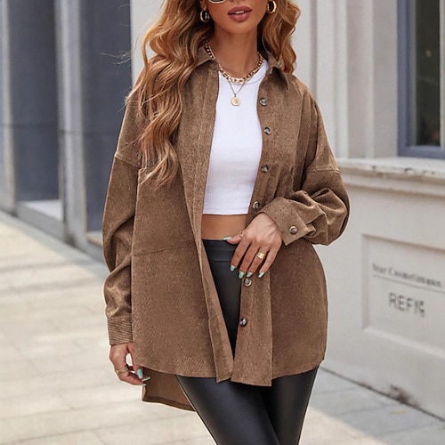 Per donna Camicia Blusa Semplice Elegante Casual Manica Lunga Colletto a Camicia Top Regolari Ferie Uscire Tasca Bottoni Cachi Primavera Autunno