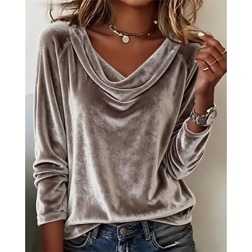 Per donna Blusa Tinta unica Elegante Casual Manica Lunga Scollo a V Top Regolari Quotidiano Blu Viola Verde Grigio Primavera Autunno Inverno