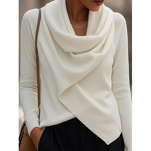 Per donna Blusa Tinta unica Elegante Essenziale Casual Manica Lunga Scollo a Cascata Top Regolari Quotidiano Arricciato Bianco Primavera Autunno Inverno