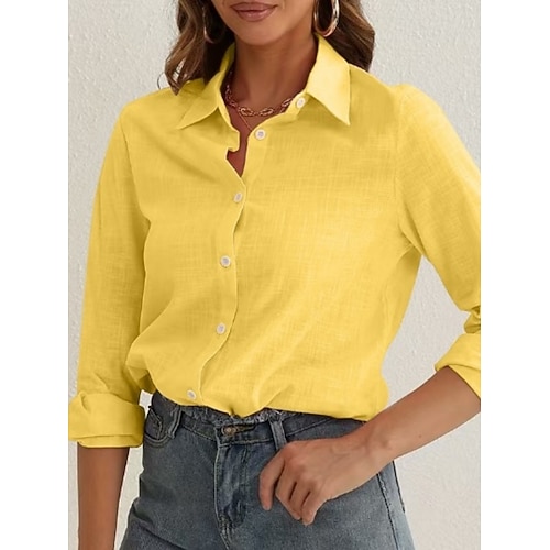Per donna Blusa Tinta unica Quotidiano Elegante Essenziale Manica Lunga Colletto a Camicia Top Regolari Quotidiano Bottoni Blu Nero Bianco Giallo Rosa Primavera Autunno Inverno