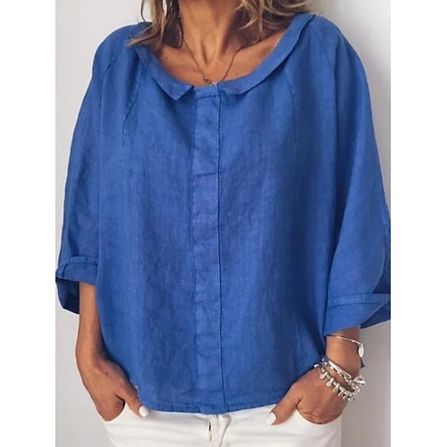 Per donna Camicia Blusa Camicie di cotone e lino Semplice Elegante Casual Manica 3/4 Scollo a V Top Regolari Quotidiano Ricamato Bianco Rosso Verde Estate Primavera Autunno