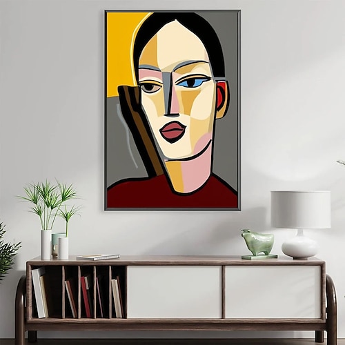 ritratto di donna astratto dipinto a mano, pittura su tela fatta a mano, pittura del viso di donna astratta, pittura femminile minimale, dipinti di ritratti di donne vivaci, decorazioni murali