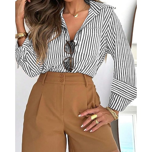 Per donna Camicia Blusa A righe Casual Manica Lunga Colletto a Camicia Top Regolari Quotidiano Ferie Uscire Bottoni Nero Giallo Rosa Rosso Arancione Estate Primavera