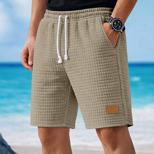Per uomo Nido d'ape Shorts Pantaloncini Estivi Shorts da Spiaggia Pantaloncini casual Coulisse Elastico in vita Tinta unica Comodità Lunghezza al ginocchio Quotidiano All'aperto Ferie Vacanza Moda