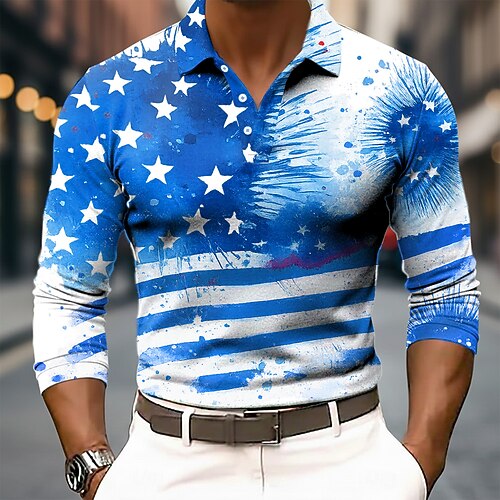 Per uomo Polo Maglia da golf Manica Lunga Magliette polo Camicie con Colletto Casual Business Casual Abbigliamento Quotidiano Athleisure Stampa 3D Bottoni Primavera Autunno Inverno Nero Blu