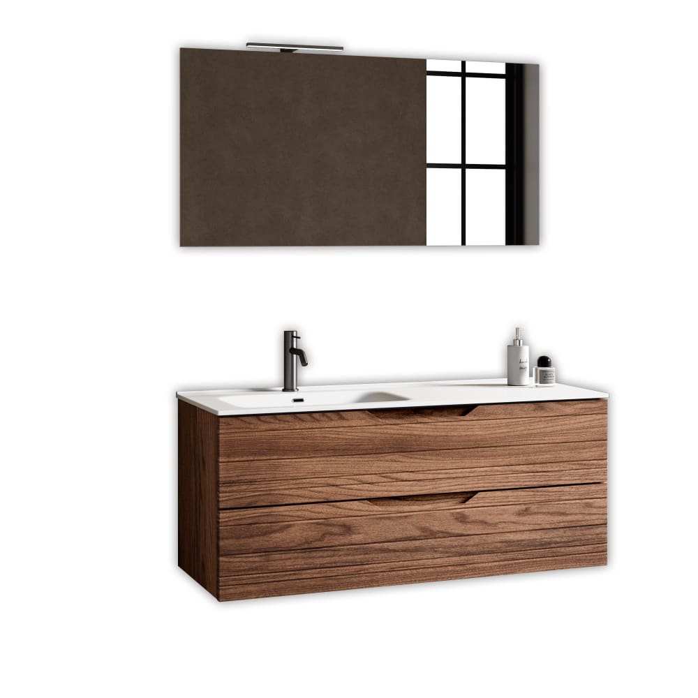 Composition de salle de bain vasque gauche 4 pièces en MDF chêne foncé
