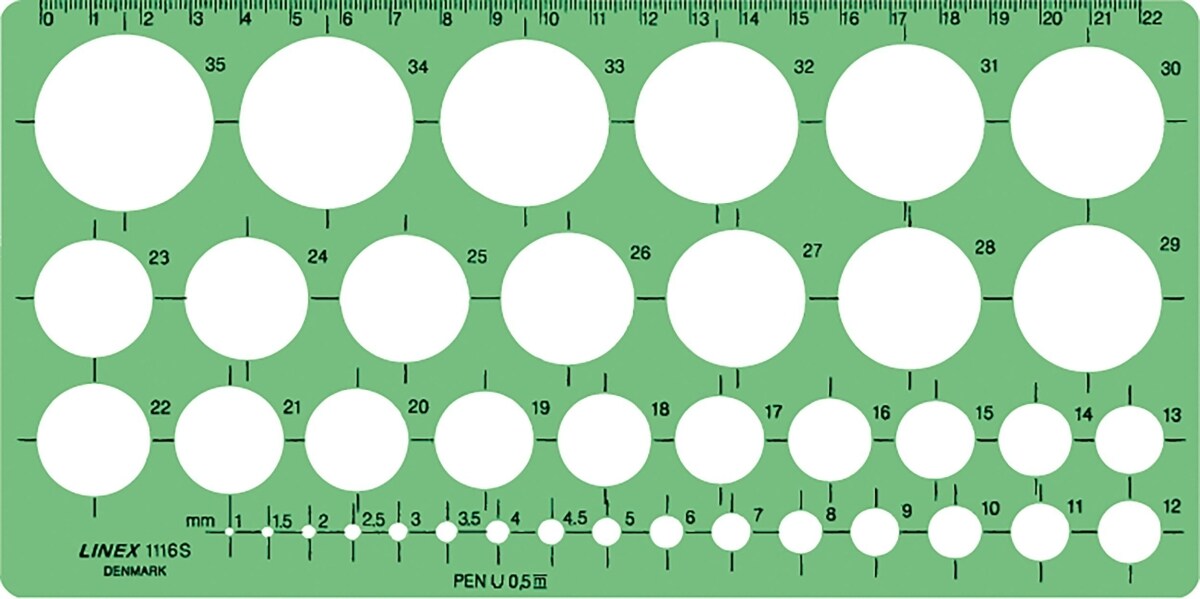 LINEX Kreis-Schablone 116S 1-35mm 32 Kreise grün Packung mit 10 Stück