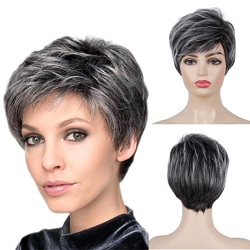 Parrucca corta con taglio pixie con frangia per donna, parrucca sintetica naturale, acconciature a strati, feste in costume cosplay, uso quotidiano