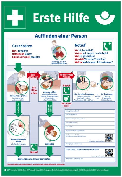 Aushang, Erste Hilfe gem. DGUV Information 204-001, 595 x 410 mm - 410x595x1.5 mm Kunststoff