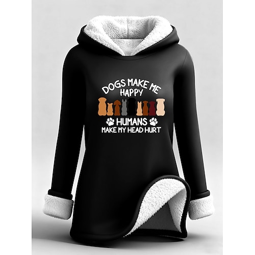 Per donna Felpa con cappuccio Grafico Lettera Caldo Casual Pile Sherpa Manica Lunga Con Cappuccio Top Regolari Streetwear Abbigliamento Quotidiano Casuale Stampato Nero Rosa Rosa scuro Rosso Blu