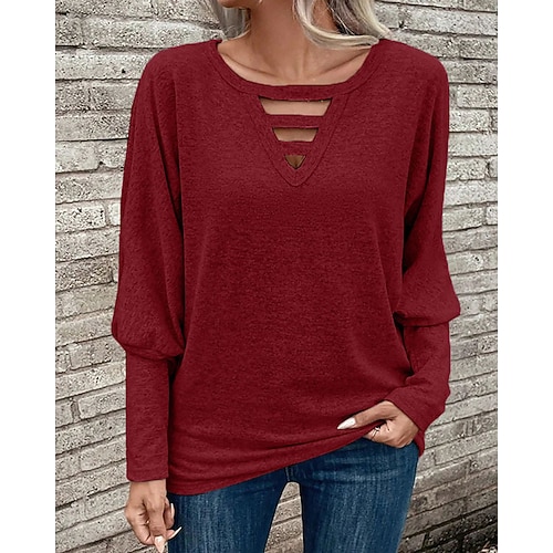Per donna Blusa Tinta unica Elegante Casual Manica Lunga Collo a U Top Regolari Quotidiano Traforato Blu Nero Rosso Verde Grigio Primavera Autunno Inverno