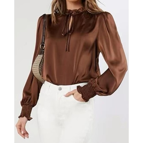 Per donna Camicia Blusa Semplice Elegante Manica Lunga Girocollo Top Regolari Ferie Uscire Arricciato Marrone Verde Rosa Estate Primavera