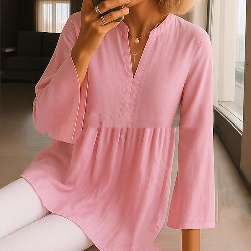 Per donna Blusa Top Eleganti Camicie di cotone e lino Colore Solido / Tinta Unita Elegante Corte Scollo a V Quotidiano Sexy Nero Rosa Blu Verde Estate