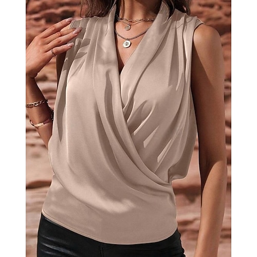 Per donna Camicia Elegant Raso/Satin Blusa Semplice Vintage Elegante Senza Maniche Scollo a V Top Regolari Quotidiano Ferie Uscire Arricciato Drappeggiato Nero Champagne Estate Primavera