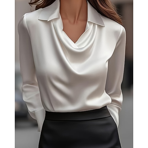 Per donna Camicia Elegant Raso/Satin Blusa Semplice Vintage Elegante Manica Lunga Colletto a Camicia Top Regolari Quotidiano Ferie Uscire Arricciato Blu Nero Bianco Champagne Rosa Estate Primavera