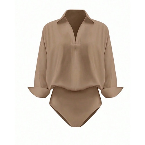 Per donna Camicia Blusa Semplice Elegante Essenziale Casual Manica Lunga Colletto a Camicia Top Regolari Quotidiano Ferie Uscire Nero Bianco Giallo Vino Blu marino Primavera Autunno