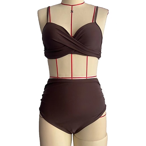 Per donna Costume da bagno arricciato Bikini Costume da Bagno Tinta unita Costumi da bagno Rosa chiaro Nero Traspirante Senza Maniche - Surf Spiaggia Nuoto Estate