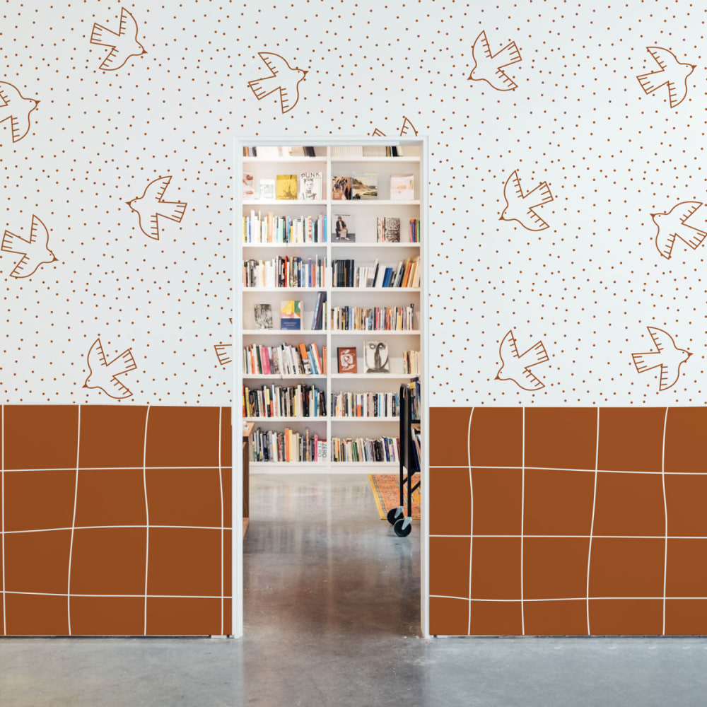 Carta da parati panoramica con zoccolo e uccello, Marrone 22