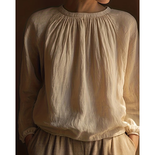 Per donna Blusa Semplice Casual Manica Lunga Girocollo Top Regolari Quotidiano Ferie Uscire Arricciato Bianco Grigio scuro Albicocca Estate Primavera