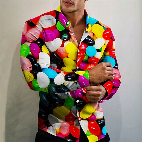 Per uomo Alimenti Camicia Manica lunga Di tendenza Streetwear Originale Esterno Giornaliero Autunno inverno Collo ripiegabile Stampa Giallo Rosso Blu Arcobaleno