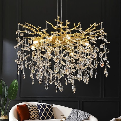 lampadario di cristallo 6 lampade 23,5 pollici/ 8 lampade 31,2 in moderno lampadario in oro illuminazione rami ristorante lampadario goccia di pioggia lampade a sospensione ac110v ac220v