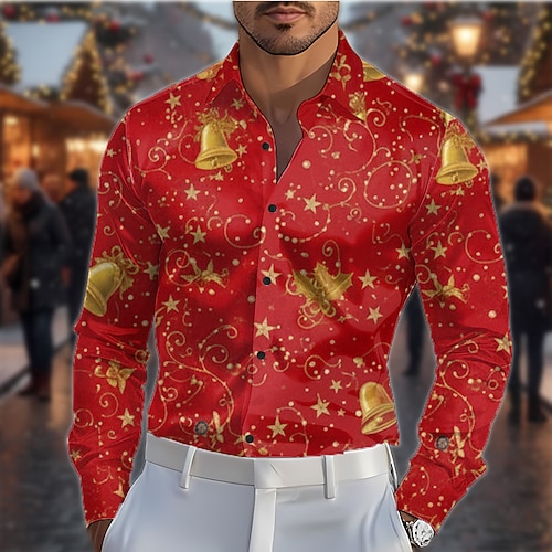 Natale Per uomo Stampa Floreale Palline di Natale Camicia Camicia in raso Camicia elegante Manica Lunga Moda Casual All'aperto Ferie Primavera Autunno Collo ripiegato Stampa 3D Camicie con bottoni