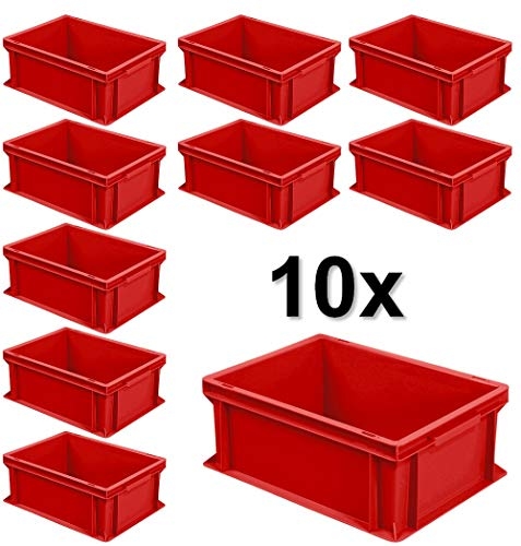 BRB 10x Euro-Stapelbehälter mit 2 Griffleisten, LxBxH 400x300x170 mm, 16 Liter, rot