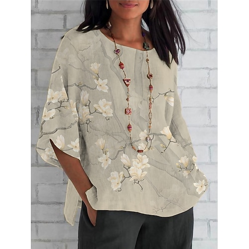 Per donna Camicia Floreale Quotidiano Casual Manica 3/4 Girocollo Top Regolari Quotidiano Ferie Stampato Beige Grigio Estate Primavera Autunno