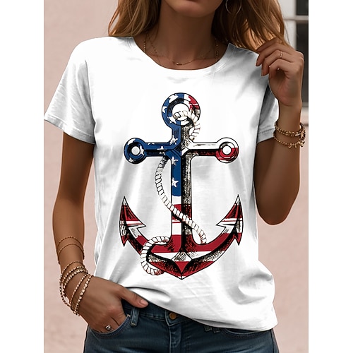 Maglietta Patriottica da Donna Grafica Stella Vintage Elegante Classica Maniche Corte Collo Giro Regular Tops Stampa Quotidiana Weekend Nero Bianco Rosa Estate