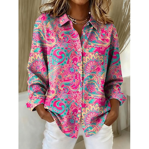 Per donna Camicia Blusa Paisley Elegante Moderno Casual Manica Lunga Colletto a Camicia Top Regolari Lavoro Stampato Rosa Rosso Verde Estate Primavera Autunno Inverno