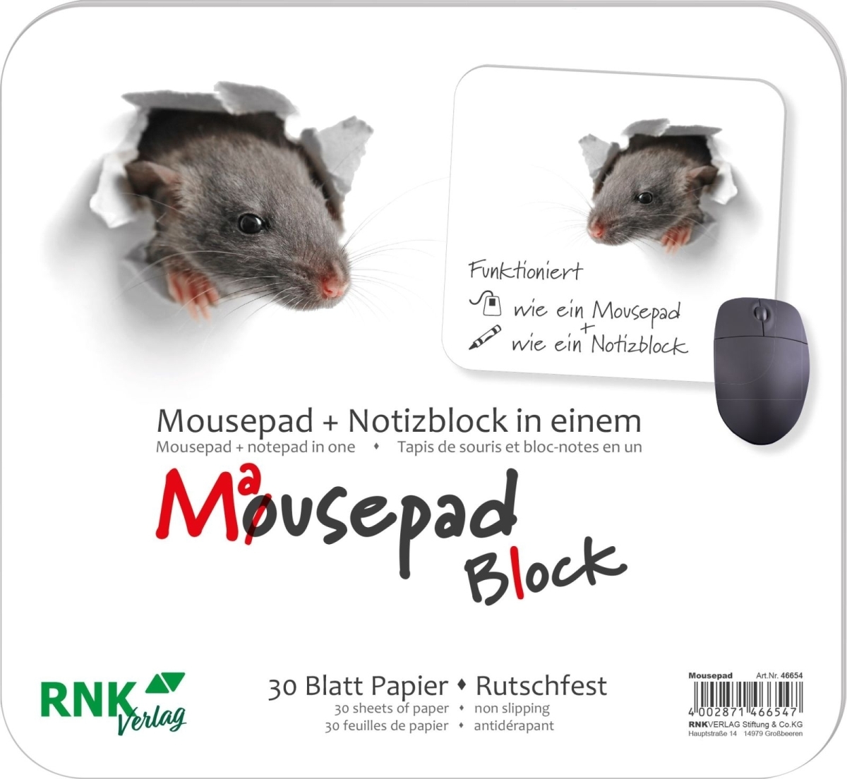 RNK Mousepad-Block 24x22cm 30 Blatt 'Mausi'