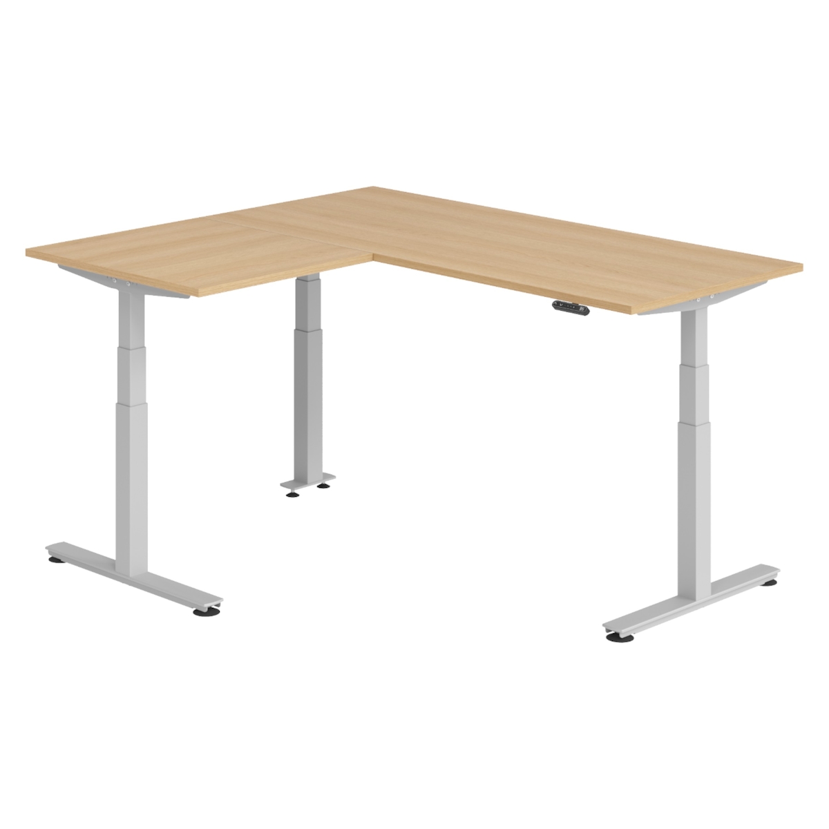 bümö Eckschreibtisch elektrisch höhenverstellbar L-Form: 180 x 160 cm in Eiche, Gestell silber - Stehschreibtisch mit Memory-Steuerung, elektrischer