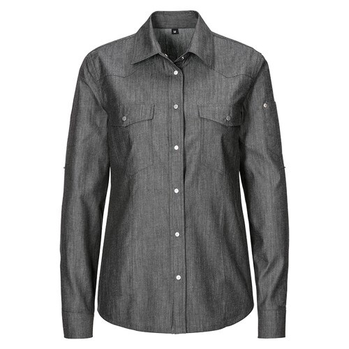 Exner 232 - Damen-Jeansbluse, tailliert, Denim : schwarz 100% Baumwolle 140 g/m² S