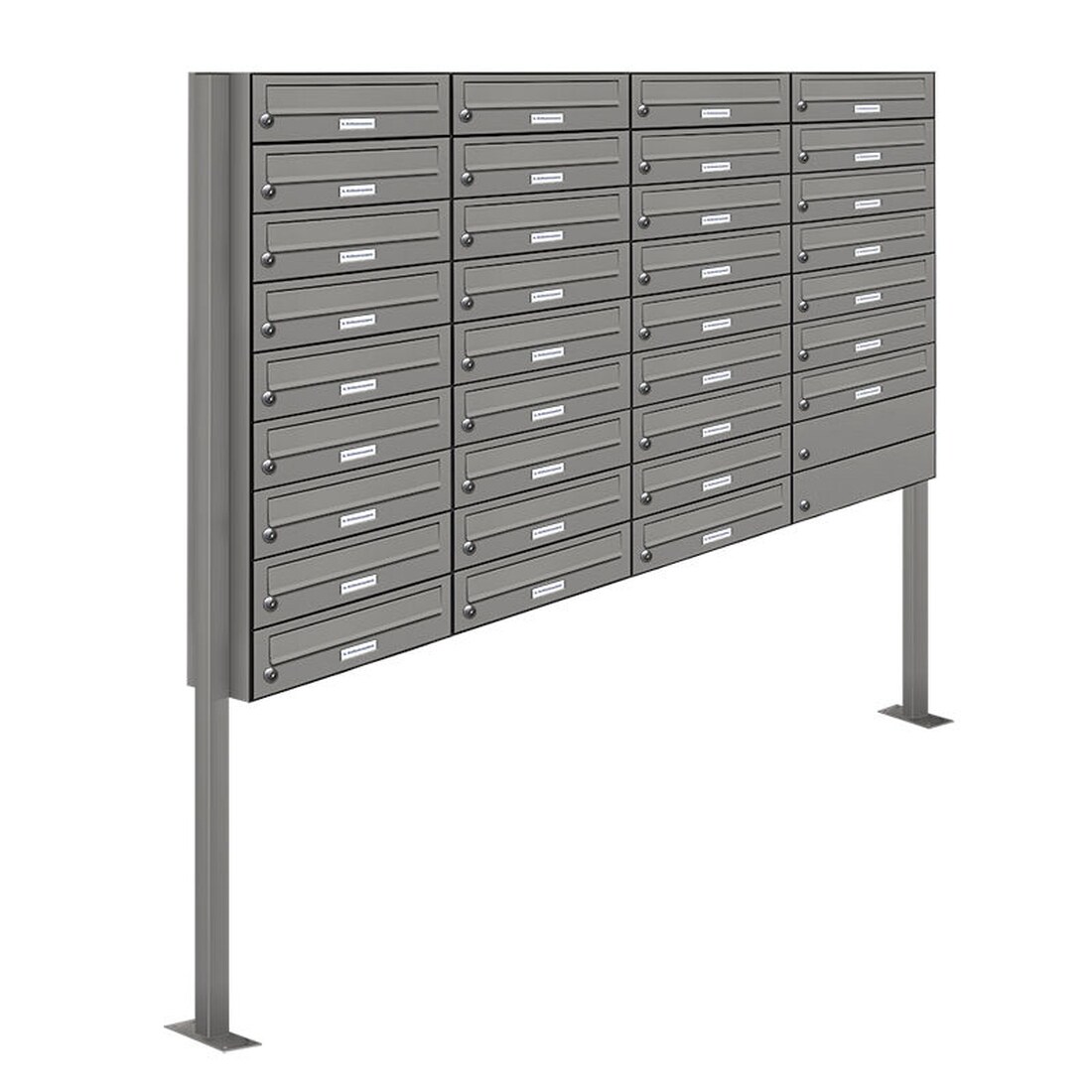 AL Briefkastensysteme 34 Fächer Premium Stand Briefkasten Anlage in RAL 9007 Aluminium Grau, Post A4, robust, wetterfest, Artikelnummer: 132P34S4P9007