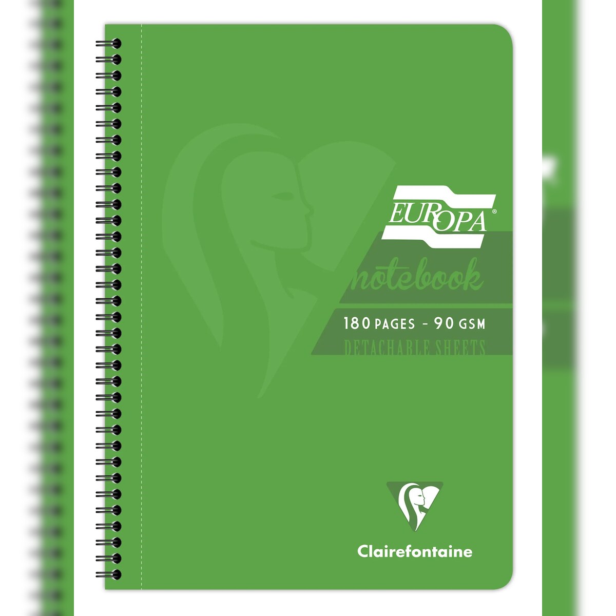 Clairefontaine 5x Spiralbuch A4, 90 Blatt 90g, abtrennbar + mikroperforiert, liniert mit Rand, EUROPA GLOSSY - Grün 5800Z