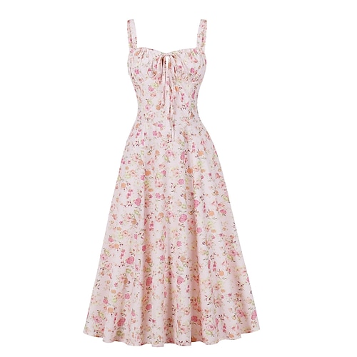 Retrò Vintage Anni 1950 Rockabilly Vestito Abito Swing Senza maniche Fiore / Floreale Costume Per donna Carnevale Mascherata Abbigliamento quotidiano Addio al Nubilato Adulti Vestito