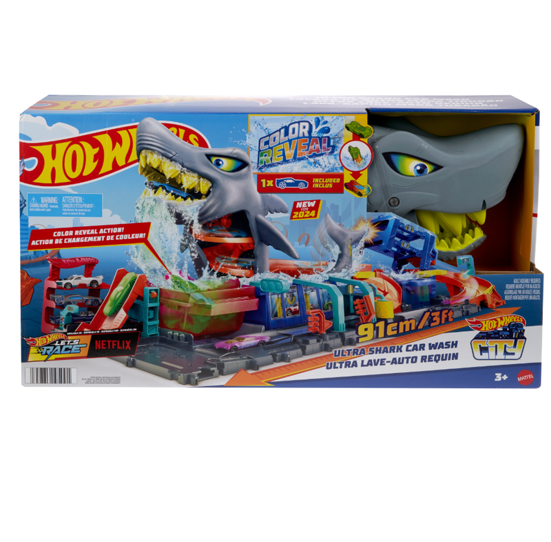Hot Wheels City shark attack autowasstraat speelset - 91 x 82,55 cm, meerkleurig