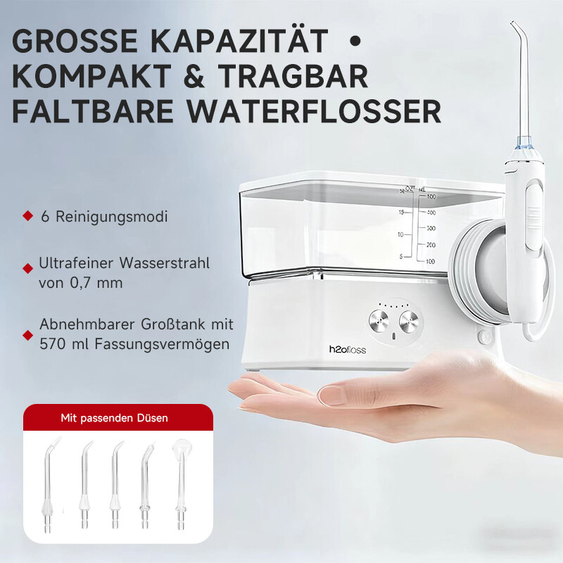 H2ofloss tragbarer Wasserstrahlgerät mit 6 Modi, 5 Düsen, 2500mAH Batterie, 570ml Wassertank, IPX7-Wasserdichtigkeit, weiß