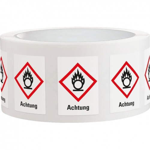 König Werbeanlagen Dreifke® Aufkleber I Gefahrensymbol Flamme über Kreis GHS 03, Achtung, Folie, 26x37mm, 500/Rolle, GHS-Verordnung