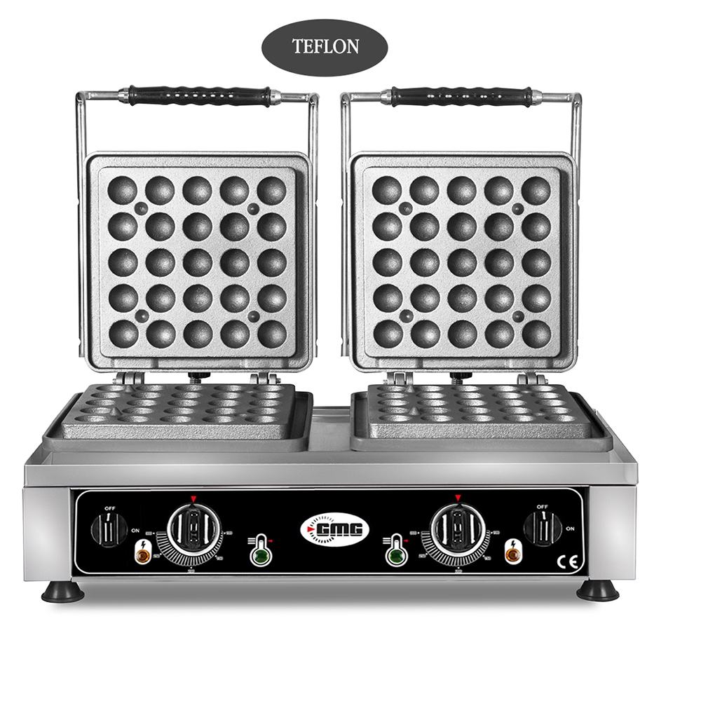 GMG - Waffeleisen Lokmia-D - 2x (25 x 3,5cm Ø x 1,7cm / 3,4cm) - 50° bis 300°C Feste Backplatte aus Gusseisen - Fettfangrinne