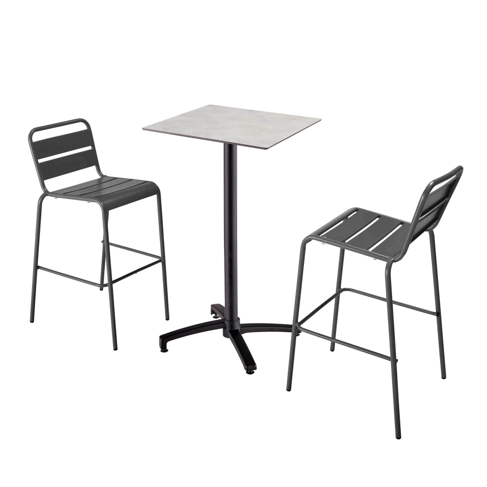 Tavolo alto da bar in laminato grigio cemento e 2 sgabelli alti grigi